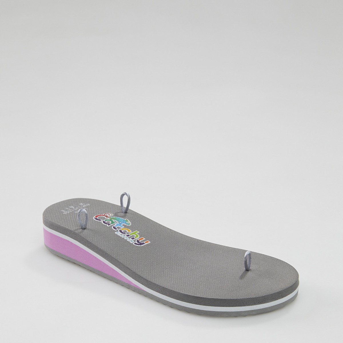 Gri - Pembe Şeritli Platform Sandalet Tabanı